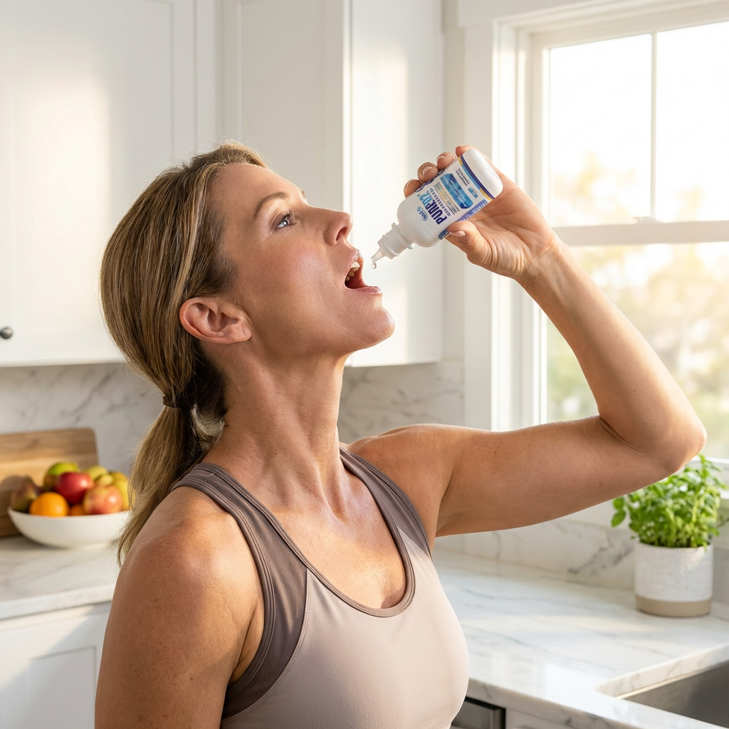 At the first sign of a sore throat or when you feel something coming on, swish Pure02™ in your mouth for 30 seconds, then swallow. The oxygen creates an environment hostile to anaerobic bacteria. Users report it helps prevent canker sores and supports recovery from bacterial issues.